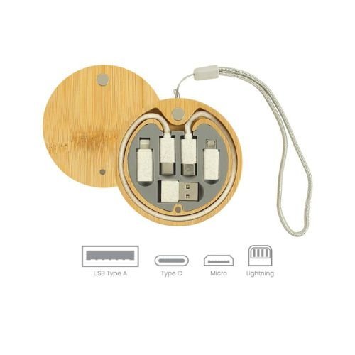 The Multi-Charging Cable Set – Round Bamboo Case offers an eco-friendly and practical solution for charging multiple devices. This set includes a variety of connectors, making it compatible with most smartphones, tablets, and other gadgets. The compact bamboo case keeps the cables neatly stored, making it perfect for on-the-go charging needs. The case’s round design not only adds an elegant touch but also ensures that you can easily carry it in your bag or pocket.